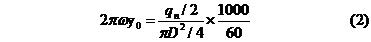 這是閥的額定流量qn、缸徑D和初始振幅y0的關(guān)系式。設(shè)計(jì)計(jì)算時(shí)將已知閥的額定流量qn、初步選定的缸徑D代入式(3),便可求出活塞初始頻率點(diǎn)的初始振幅y0?;钊南尬恍谐蘈應(yīng)滿足L≥y0,推薦取L=y0。