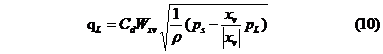將式(4)或式(5)代入式(2)或式(3)可得滑閥的負載流量(壓力流量特性)方程為
