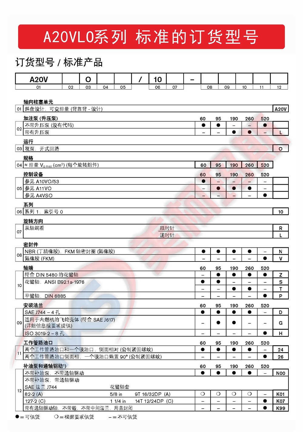 – 斜盤結構雙軸向柱塞旋轉組件變量泵,用于開式回路中的靜液壓傳動及行走機械和固定應用。
